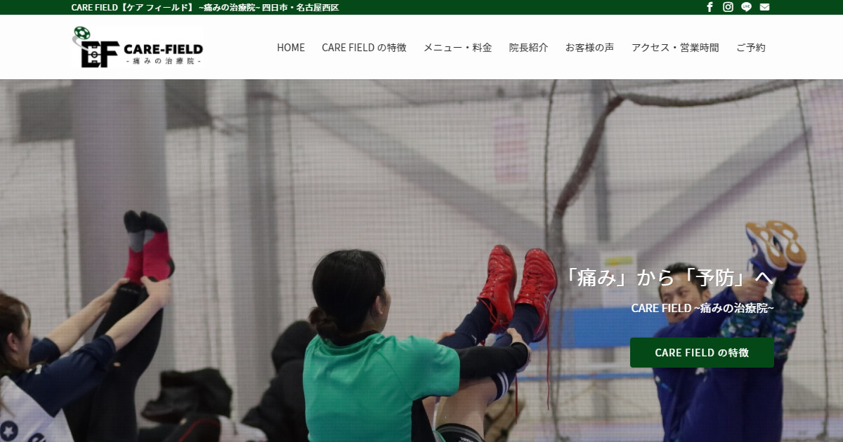 CARE FIELDUP : 2022.07.02POST : 2021.01.09WORKS四日市・名古屋市西区の治療院「CARE FIELD」のWEBサイトを制作しました。 Date2021.01PartWeb DesignWordPress# Clinic# Web Designマツ 名古屋でWEB制作してます。Wordpressでのサイト制作かなりの数こなしてます。ECサイト制作も可。個人制作では趣味関連とかスキルアップができるとか楽しいと思えることだけやってます。サッカーは観る専門、フットサルはプレー専門。FCバルセロナは熱狂的に、名古屋グランパスはわりと応援してます。MORE >facebook instagram github twitter facebook pocket hatenabookmark line rss FBI©MAG > < Nido Clinic Nagoya